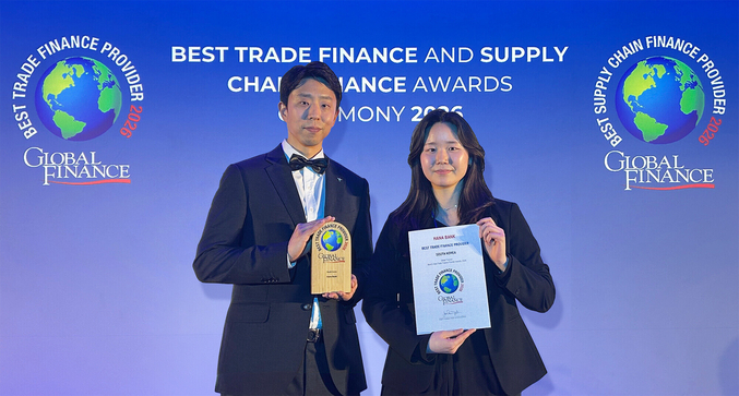 [한국재난안전뉴스 정윤희 기자] 하나은행(은행장 이호성)은 글로벌 금융·경제 전문지 '글로벌파이낸스'가 선정하는 ‘2026 대한민국 최우수 무역금융 은행상(Best Trade Finance Provider in Korea 2026)’을 수상했다고 9일 밝혔다.