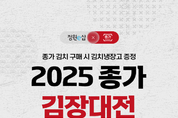 [한국재난안전뉴스 정윤희 기자] 대상(대표 최성수) 공식 온라인몰 정원e샵이 김장철을 맞아 대한민국 대표 김치 브랜드 종가의 포장김치와 김장재료 등을 총망라해 판매하는 ‘2025 종가 김장대전’을 진행한다고 4일 밝혔다. 사전예약 시 할인 및 경품 등 특별한 혜택까지 누릴 수 있다. 최근 지속되고 있는 물가 상승에 이상기온 현상까지 맞물려 김장재료 가격이 폭등하면서 포장김치 수요가 증가하는 추세다. 이에 정원e샵은 ‘김포족(김장을 포기하는 소비자)’을 위한 다양한 종류의 포장김치를 할인가에 선보인다. 먼저, 100% 국내산 최고 품질의 재료로 만든 포장김치는 ▲깔끔시원 김장김치(9㎏) ▲전라도 김장김치(9㎏) 2종부터, ▲총각김치(2.3㎏/5kg) ▲열무김치(2.5㎏) ▲돌산갓김치(3㎏) ▲파김치(2.5㎏) 등과 같은 각종 별미김치까지 다양하게 구성해 선택의 폭을 넓혔다. 이와 함께 직접 김장을 담그는 ‘김장족’을 위해 간편하게 준비할 수 있는 제품들도 마련했다. 절인 배추에 바로 버무릴 수 있는 김장 양념은 소비자들의 취향에 따라 담백한 맛의 ▲깔끔시원 김장양념(5.5㎏)과 풍부한 젓갈과 양념을 넣어 칼칼한 맛이 특징인 ▲전라도 김장양념(5.5㎏) 두 가지