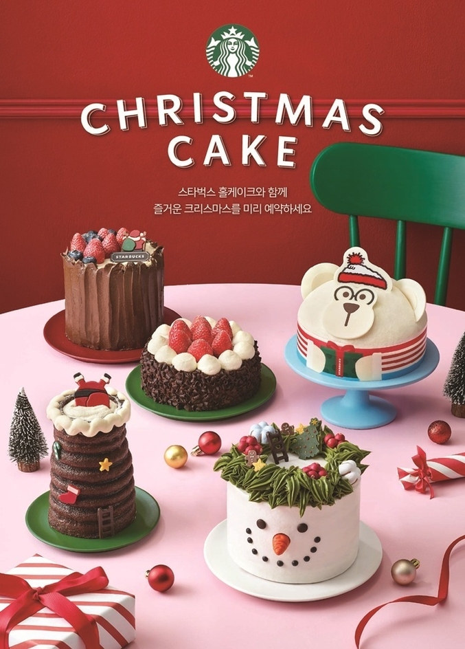 스타벅스는 올해 크리스마스 케이크 사전 예약에서 연말 분위기를 물씬 내는 프리미엄 케이크 라인업을 예년보다 한층 강화하고 준비 수량을 크게 늘리는 한편, 사전 예약 할인, 결제수단 및 통신사 할인과 선착순 할인 쿠폰 등을 제공해 더욱 합리적인 가격에 양질의 케이크를 즐길 수 있게 한다는 계획이다.