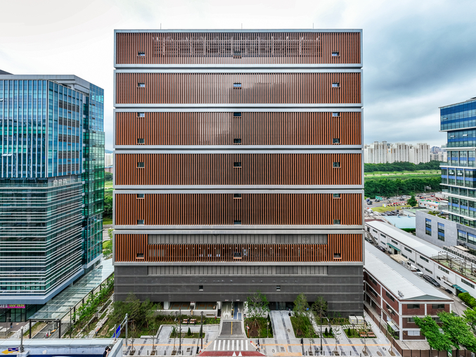 DL건설은 어려운 부지 조건과 제한된 공사기간 속에서도 Top-Down 공법을 적용해 골조공사를 진행했다. 외관 전면부는 금속 루버(Louver)를 활용해 서버랙(Server Rack)의 형상을 표현, 미래지향적인 이미지를 구현했다. 외관 후면부에는 일조량을 정밀 분석해 163.38kW 규모의 태양광 패널을 설치, 상용 가능한 친환경 발전 설비를 구축함으로써 지속가능성을 고려한 설계를 실현했다.