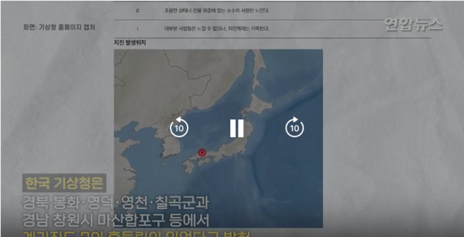 연합뉴스 보도에 따르면, 일본 강진은 우리나라 영남 일부에서도 감지됐다. 기상청은 이날 지진으로 경북 봉화·영덕·영천·칠곡군과 경남 창원시 마산합포구 등에서 계기진도 2의 흔들림이 있었다며 영남 일부에서 지진동이 느껴졌을 수 있다고 밝혔다.