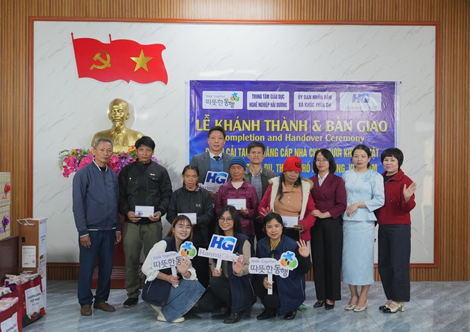 하이증성 빈장현에서 진행된 공간복지 지원 사업 준공식에는 지원 대상 장애인 가족과 인근 주민들을 비롯해 이민우 한미글로벌 베트남 법인장, 하티란 아인(Ha Thi Lan Anh) 지역 인민위원회 부위원장, 하이증성 직업 교육 센터 관계자 등이 참석했다.