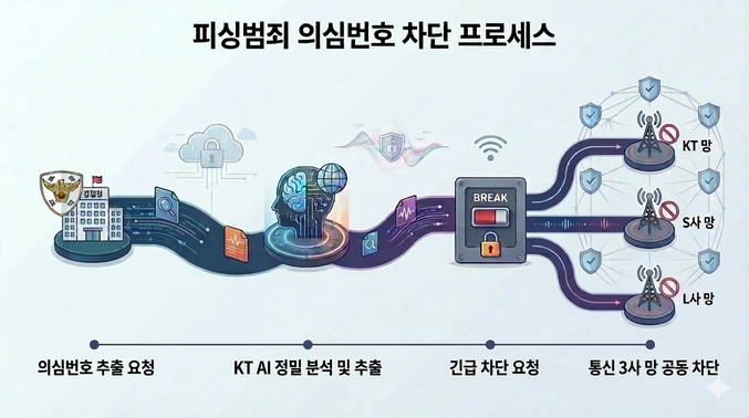 [한국재난안전뉴스 박광춘 기자] KT(대표 김영섭)는 경찰청 전기통신금융사기 통합대응단과 협력해 AI 기반 피싱 의심번호 탐지·차단 시스템을 구축하고, 올해 1월부터 본격 운영에 들어갔다고 밝혔다.
