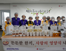 [한국재난안전뉴스 박광춘 기자] 효성(회장 조현준)은 19일 서울 마포구 대한적십자사 마포봉사나눔터에서 취약계층 지원을 위한 ‘사랑의 밑반찬’ 봉사활동을 진행했다. 이날 효성 임직원들은 제육볶음, 호박전, 나박김치 등 다양한 밑반찬을 직접 만들고 포장해 지역 내 취약계층에 전달했다. ‘사랑의 밑반찬’ 사업은 효성이 대한적십자사와 함께 2005년부터 21년째 이어오고 있는 사회공헌 프로그램이다. 마포구 내 노인, 아동·청소년, 이주민 등 취약계층의 결식을 예방하고 균형 잡힌 식생활을 지원하기 위해 매주 1회 밑반찬을 제작·전달하고 있다. 또한 명절과 동지, 정월대보름 등 절기에는 삼계탕, 팥죽, 떡국 등 특식을 추가로 제공해 취약계층의 정서적 소외감 완화에도 힘쓰고 있다. 대한적십자사 봉사원들은 정기적인 가정 방문을 통해 정서적·심리적 돌봄을 제공하며, 대상자들의 생활 상황을 지속적으로 살피고 있다. 효성 조현준 회장은 “기업의 책임은 이윤을 넘어 이웃과 함께 성장하는데 있다. 지역사회가 건강한 일상을 유지할 수 있도록 지속적인 지원을 이어가겠다”고 평소 강조해 왔다.
